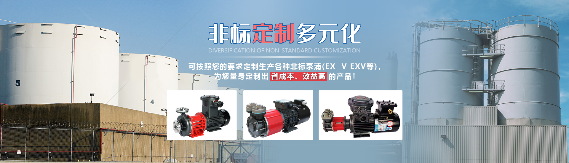 可根據您的工藝需求定制特殊電壓(V)、頻率(HZ)、防爆(EX)、防爆(EX)+變頻(V)等特殊產品,批量個性化定制開發等,給您提升效率,降低成本。不斷追求技術創新、得到更多企業認可。公司產品包括旋渦磁力泵、輕型離心磁力泵、化工離心磁力泵、襯氟磁力泵、精密旋渦泵、大流量離心泵、小型高壓葉片泵、不銹鋼多級泵、立式管道泵等;產品耐溫范圍從低溫-196℃到高溫+400℃,涉及化工、環保、印染、醫藥、半導體、新能源、汽車、電子、軍工、食品、石油和通用機械等行業領域。